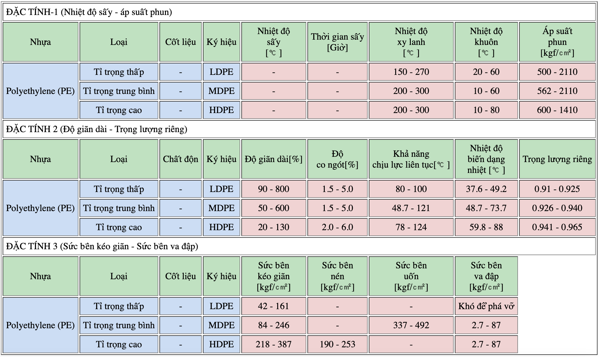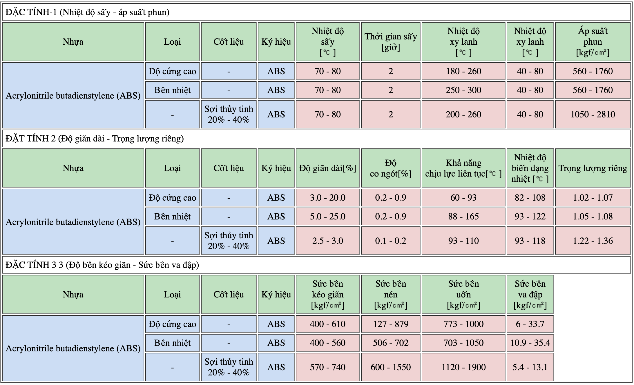 Đặc Tính Của Nhựa Dùng Đúc Trong Khuôn: