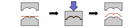 Đột dập bằng cách ép một tấm kim loại vào lòng khuôn ( thường với kim loại tấm)
