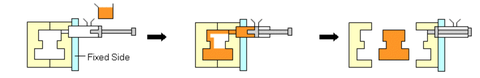 1) Lắp ráp khuôn 2) Phun kim loại lỏng 3) Mở khuôn sau nguội