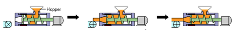 1) Cấp liệu 2) Ép khuôn 3) Hoàn thành