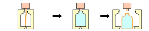 1) Đặt vật liệu dạng ống vào khuôn 2) Thổi không khí vào 3) Hoàn thành